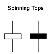 Chân nến Nhật Bản có bóng trên dài, bóng dưới dài và thân nến nhỏ được gọi là đỉnh quay. Màu sắc của cơ thể thật không quan trọng lắm. Ngoài ra, các mô hình Spinning Top cho thấy sự do dự giữa người mua và người bán.