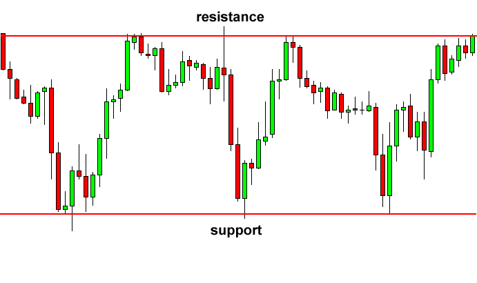 Trong hình trên, chúng ta có thể thấy rõ ràng rằng cặp tiền này bị giới hạn bởi hai mức giá chính song song với nhau trong khi các mẫu biểu đồ khác thường được vẽ bằng các đường trendline chéo hoặc dốc, thì hình chữ nhật được hình thành với các mức hỗ trợ và kháng cự được vẽ các trendline ngang hoặc phẳng
