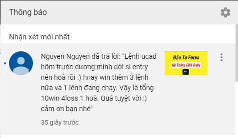 Trong bài viết này mình đưa tới cho các bạn hệ thống giao dịch Forex có khả năng thắng 70%. Đây không phải là do bọn mình "chém gió" ra mà là do các bạn xem video youtube làm và phản hồi lại. Hy vọng rằng hệ thống này có thể giúp ích cho các bạn trong quá trình giao dịch. Mình rất mong nhận được phản hồi tương tự như thế này từ phía các bạn vì điều đó khiến cho CHN Team có động lực chia sẻ nhiều hơn. https://www.youtube.com/watch?v=81WEEcPfBvU [caption id="attachment_1467" align="aligncenter" width="913"]