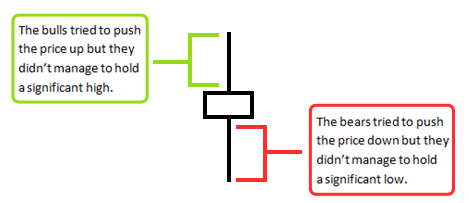 Bạn có thể thấy từ hình ảnh trên, Doji kể một câu chuyện rất giống với Spinning Top. Trong thực tế, hầu hết các nến (đảo ngược) cho bạn biết một câu chuyện tương tự. Chúng ta sẽ đi vào chi tiết hơn trong phần tiếp theo.